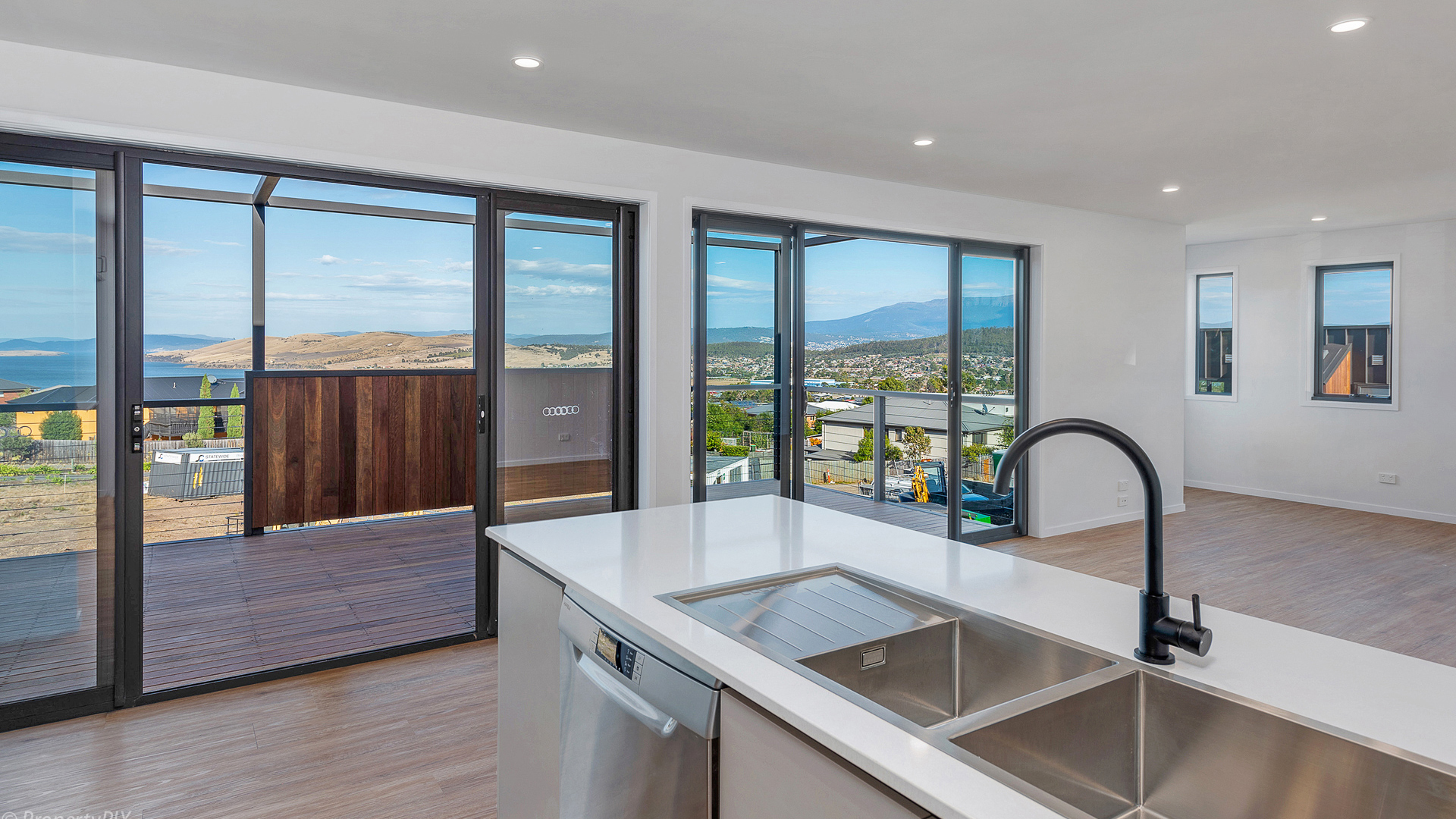 Surrounded by executive homes, with beautiful views of Mount Wellington and the water that can be admired from the open plan living area. Complimented by a designer kitchen with stone bench tops, European appliances, alfresco dining and family area. Enter the master bedroom with ensuite and walk in robe, walk in shower with heated floor tiles and separate bath.
